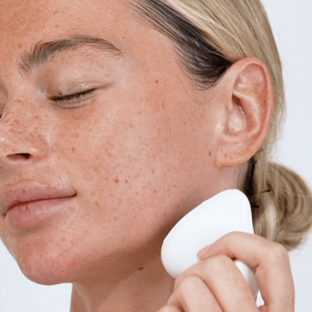 Massez doucement du haut de la mâchoire vers le bas du cou, encourageant un doux drainage lymphatique bienfaisant pour une sensation de revitalisation accrue.